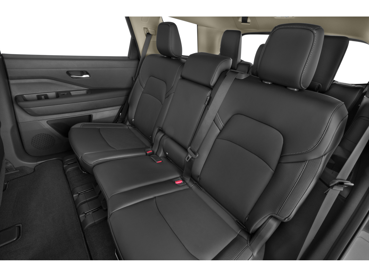 • Fixed 60-40 Bench Leatherette 3rd Row Seat Front, Manual Recline, Manual Fold Into Floor, 3 Manual and Adjustable Head Restraints