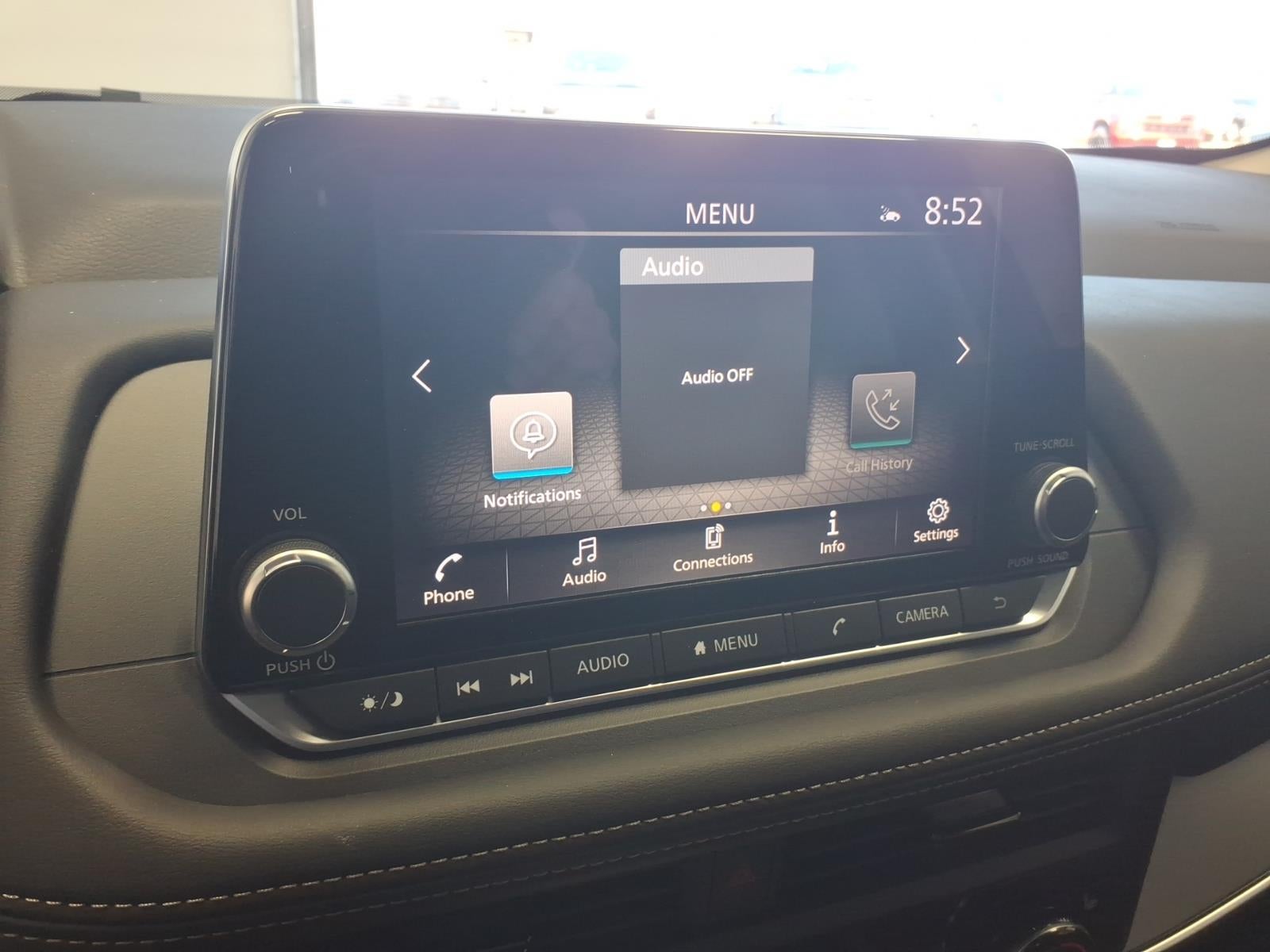 - Radio: AM/FM NissanConnect -inc: 6 speakers plus 2 tweeters, Apple CarPlay, Android Auto, 8" color touch screen display, Bluetooth®, 2 front USB type-C, Wi-Fi hotspot and NissanConnect Services powered by SiriusXM