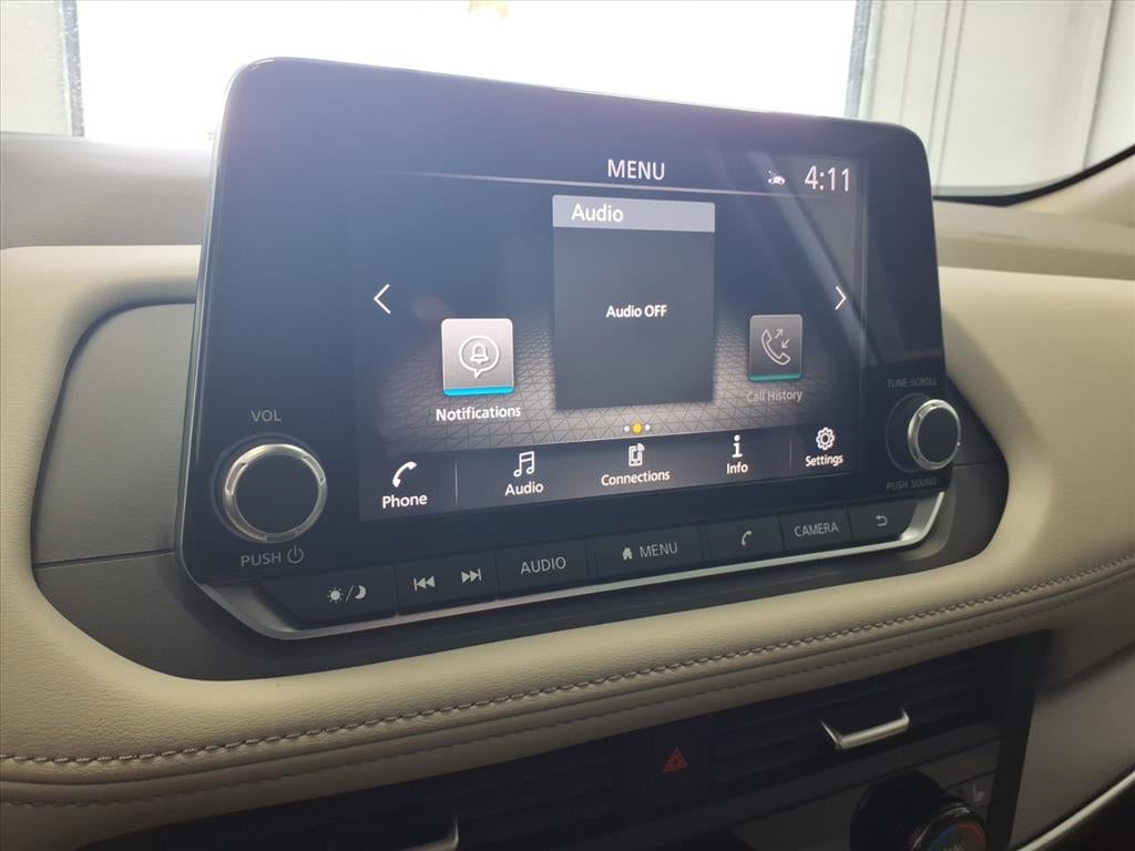 - Radio: AM/FM NissanConnect -inc: 6 speakers plus 2 tweeters, Apple CarPlay, Android Auto, 8" color touch screen display, Bluetooth®, 2 front USB type-C, Wi-Fi hotspot and NissanConnect Services powered by SiriusXM