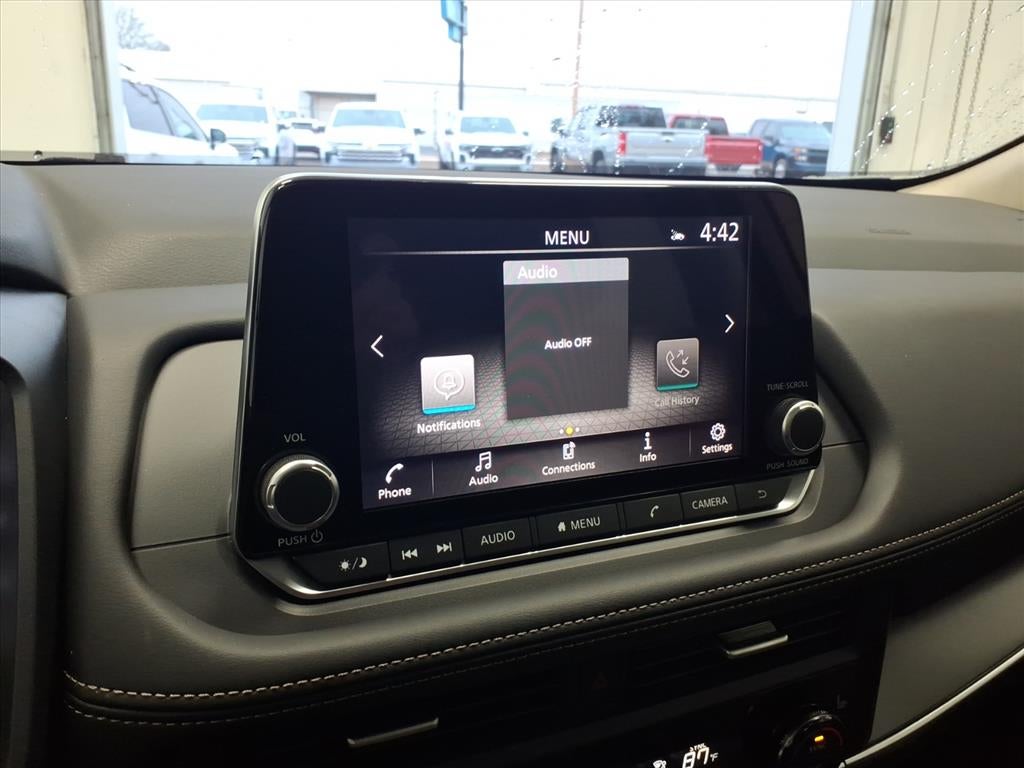 - Radio: AM/FM NissanConnect -inc: 6 speakers plus 2 tweeters, Apple CarPlay, Android Auto, 8" color touch screen display, Bluetooth®, 2 front USB type-C, Wi-Fi hotspot and NissanConnect Services powered by SiriusXM