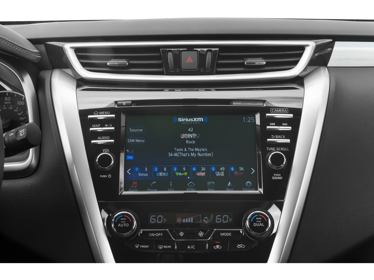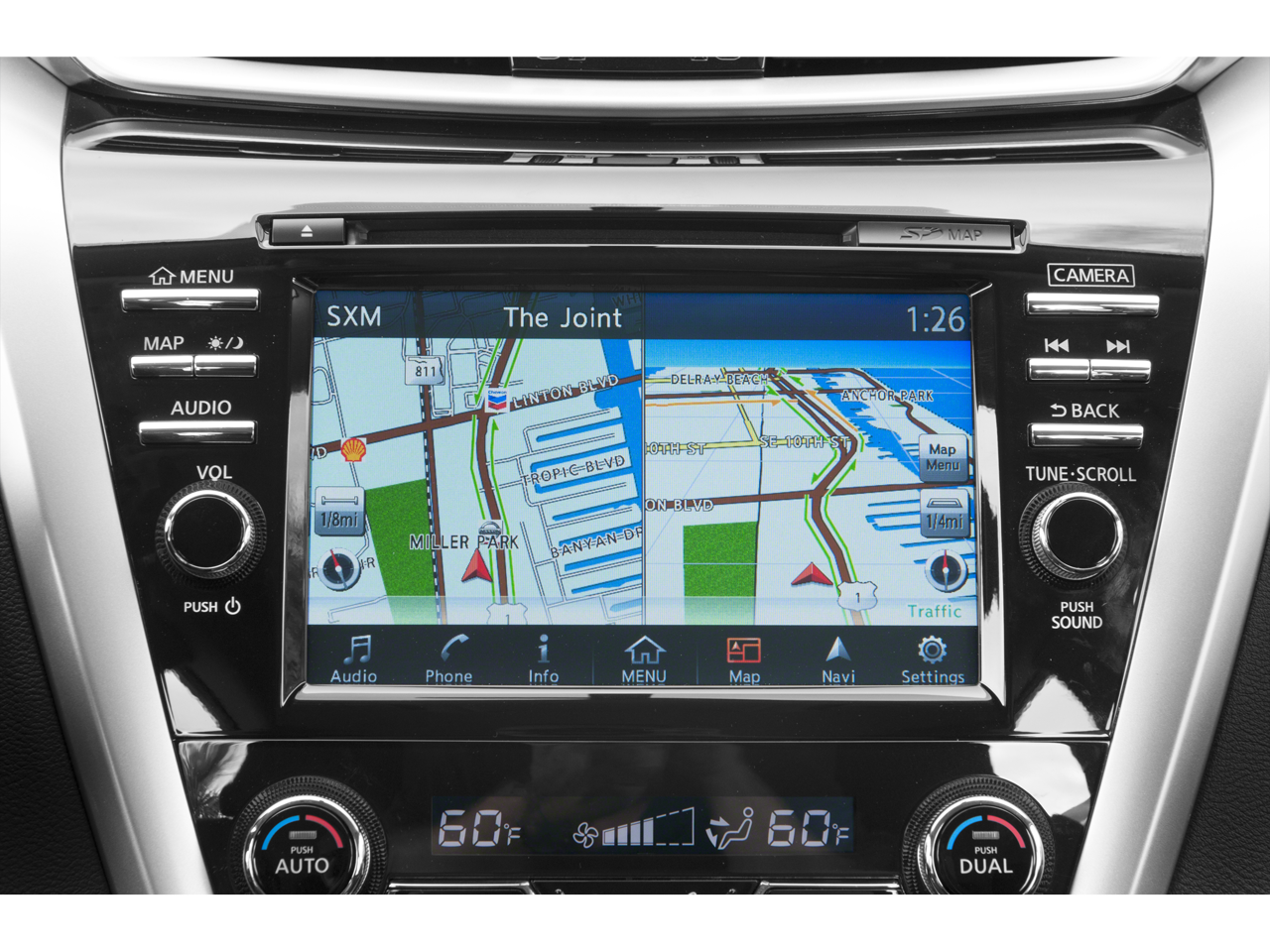 - Radio: AM/FM/CD Audio System w/Navigation -inc: 6 speakers, audio auxiliary input jack, NissanConnect w/Mobile Apps, 8" color display w/multi-touch control, front USB port, Bluetooth® hands-free phone system, streaming audio via Bluetooth®, hands-free text messaging assistant, SiriusXM satellite radio voice recognition for navigation and audio, SiriusXM Traffic, SiriusXM Traffic Link, rear USB port and HD radio